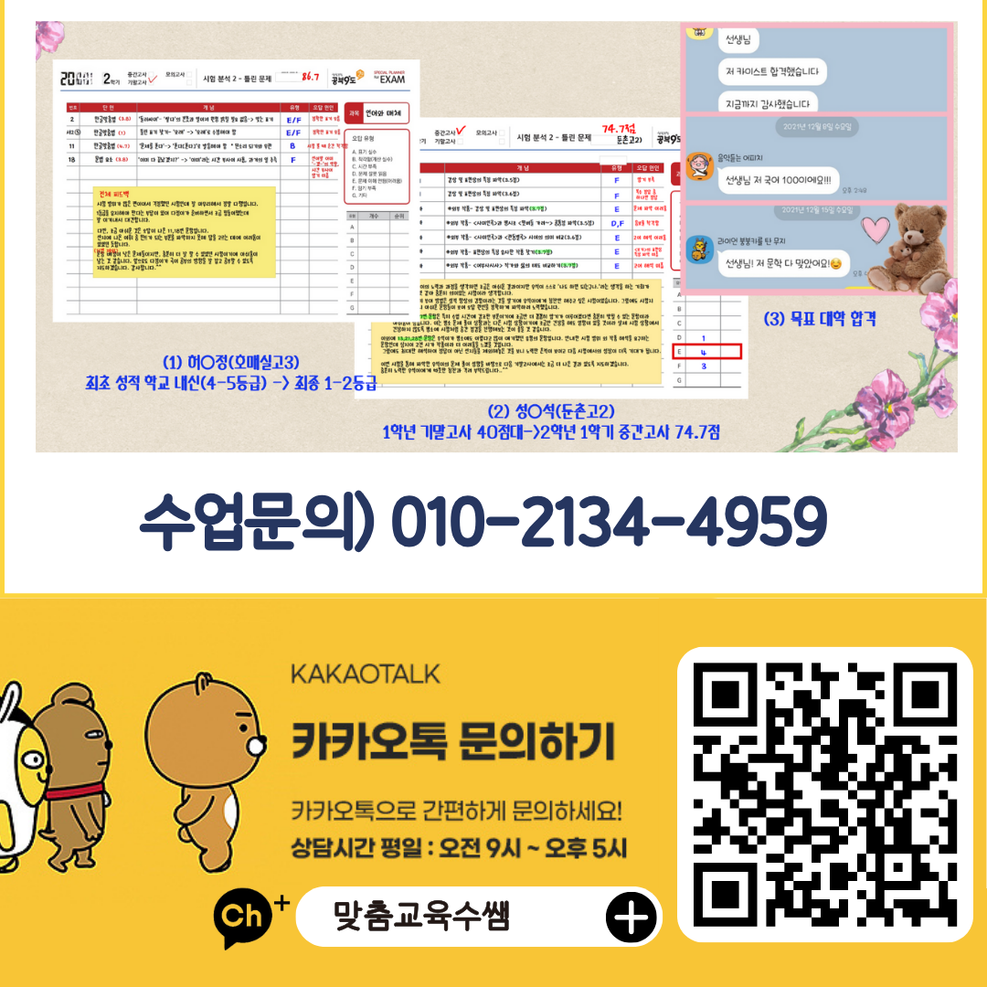 | 가경동 고등영어 국어과외 중학수학 초등학생 한국사 검정고시 과탐 사탐 필수과목 (0) | 2024.04.05 |